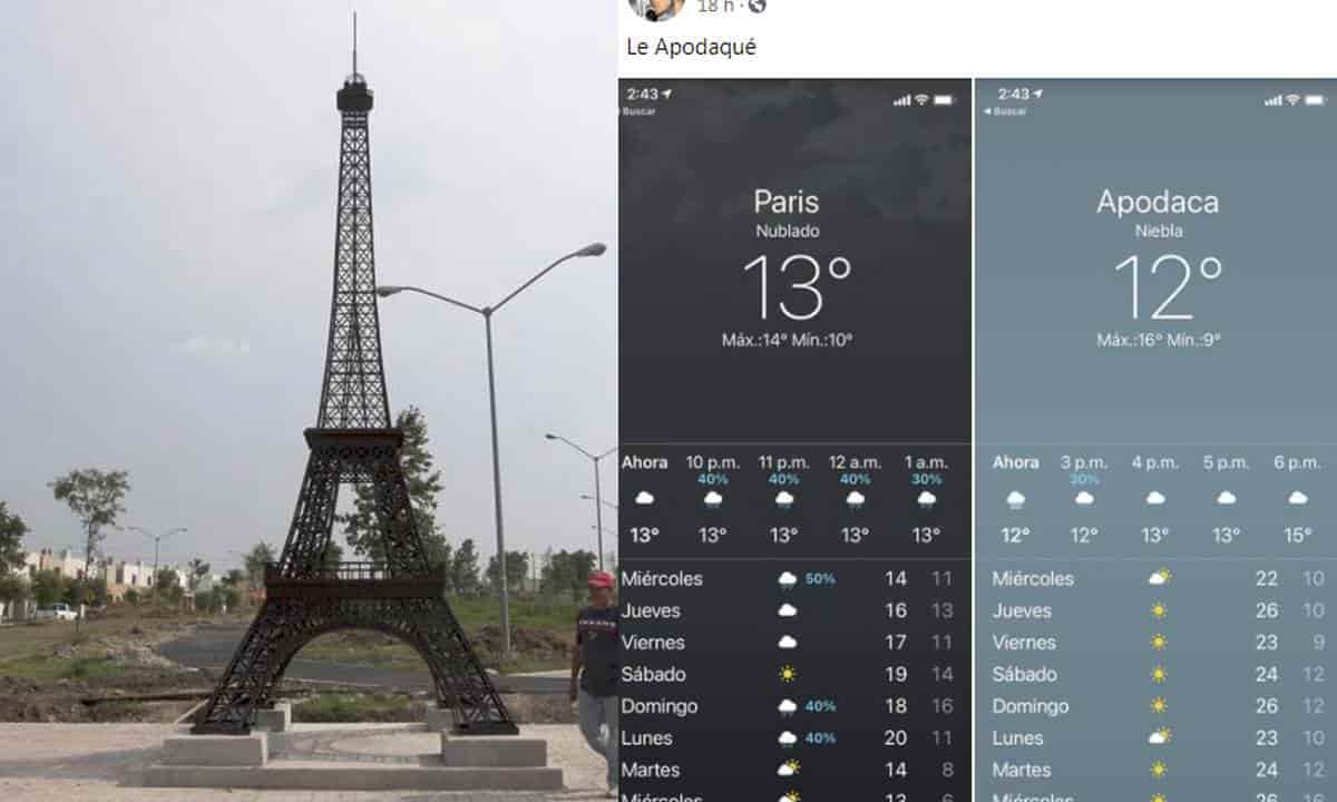 Durante la tarde de ayer, se volvieron virales en redes sociales un par de capturas de pantalla sobre el clima de Apodaca en comparación al de París