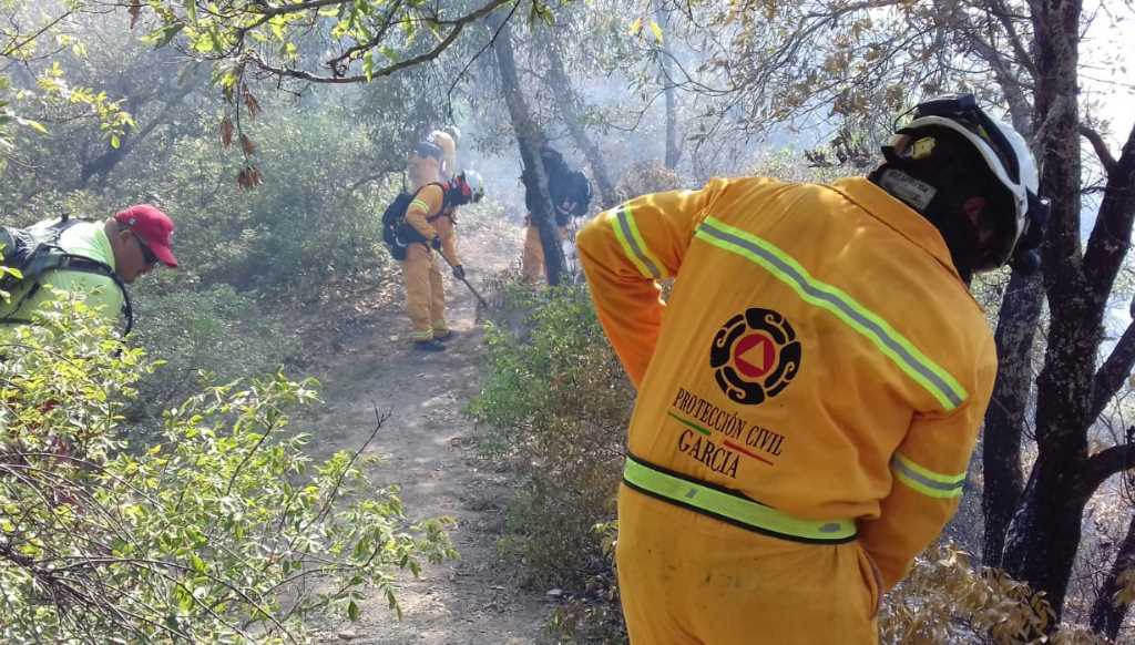 A las labores para sofocar el fuego se han unido elementos de Protección Civil de García, Galeana, Allende, Linares y Guadalupe, quienes trabajan bajo coordinación de PCNL. Además, se cuenta con el apoyo de Conafor, Bomberos Nuevo León, Fuerza Civil, Sedena y Agua y Drenaje.
