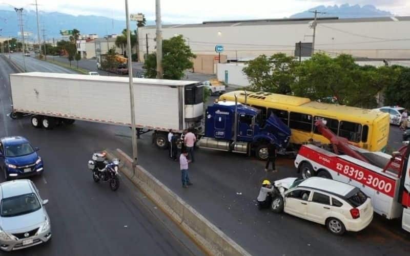 Tráiler brinca camellón y choca contra camioneta y camión urbano en San Nicolás; hay 12 heridos