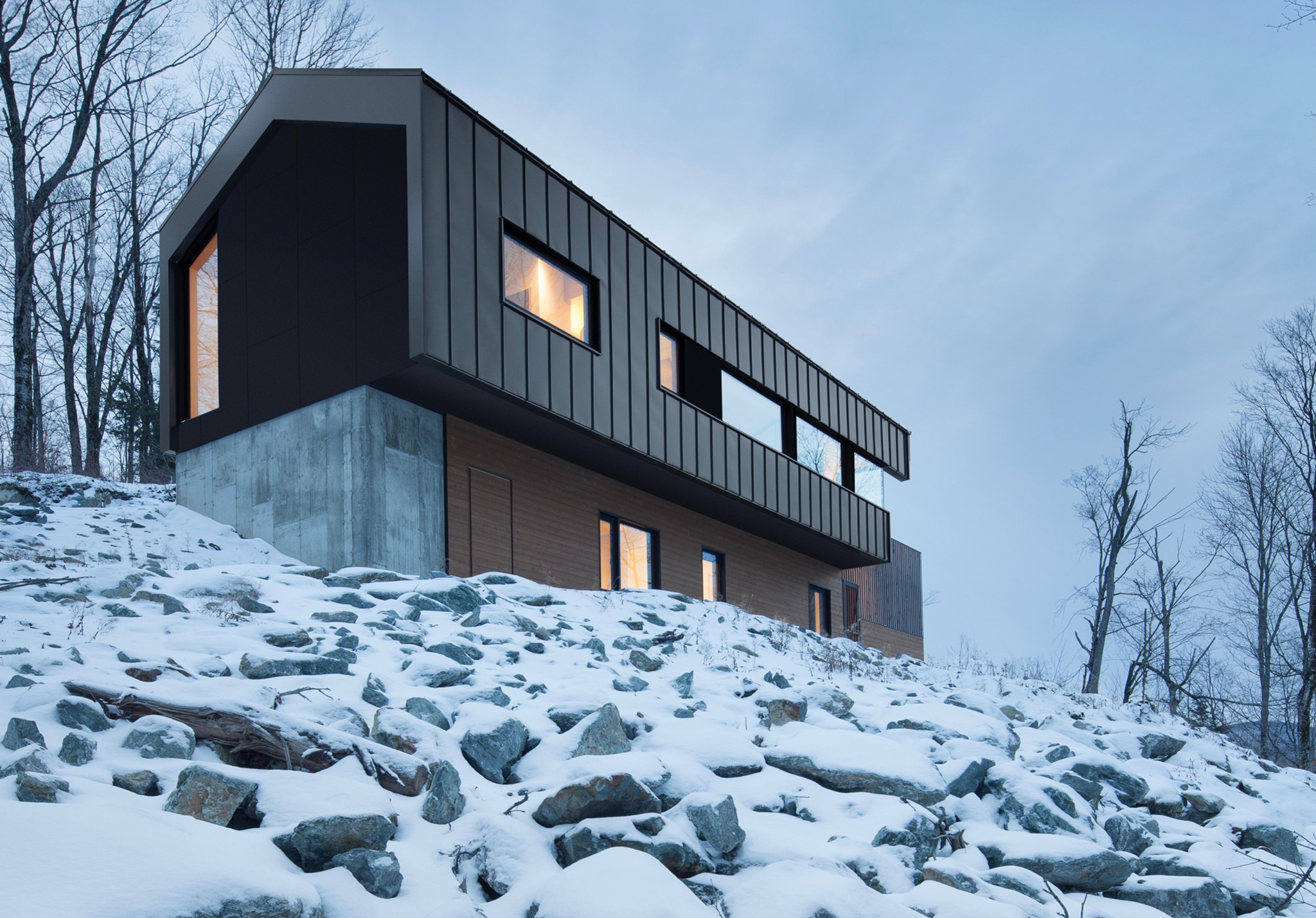 La calidez en este tipo de construcciones se logra mediante el equipamiento y mobiliario interior, donde la madera siempre juega un papel importante. Se integran también distintos sistemas de calefacción: desde un piso de calefacción radiante que permite tener controlada la temperatura en el suelo interior que logre el confort, hasta sistemas sofisticados de descongelamiento de nieve, tanto en techos como en pasillos, patios y escalones.